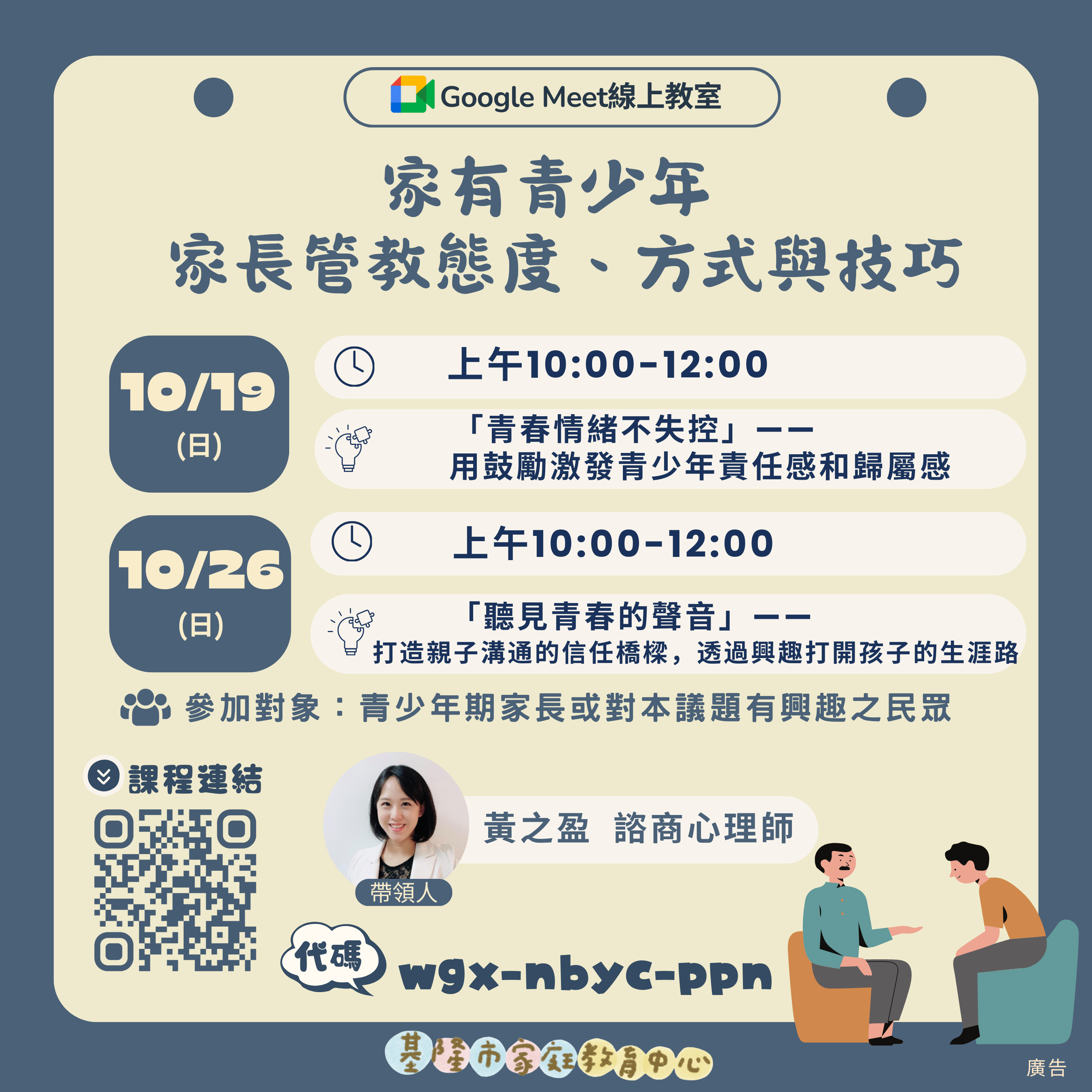 • 對象:青少年期家長或對本議題有興趣之民眾